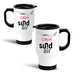 Take your daily coffee to go in your very own personalised travel mug. This sleek and stylish travel mug is a must-have for anyone whose life is constantly on the move. Featuring a 'slide opening' lid, you can sip your drink and then slide the lid closed when you are finished.