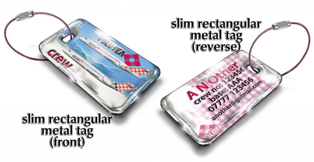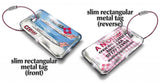 Option B: Our exclusive and unique METAL TAG with its ultra-durable, enamel effect polyurethane finish now comes in 5 formats: Round, Rectangular, Square, Mini-Rectangular, and Slim Rectangular More details